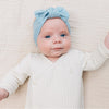 The Milk Snob® Alpine Bow is as comfortable as it is adorable! The super soft and stretchy fabric makes it the perfect size for newborn to toddler stages. This super cute accessory adds the perfect finishing touch to any outfit. This design features winter trees and adorable deer on a soft blue background.