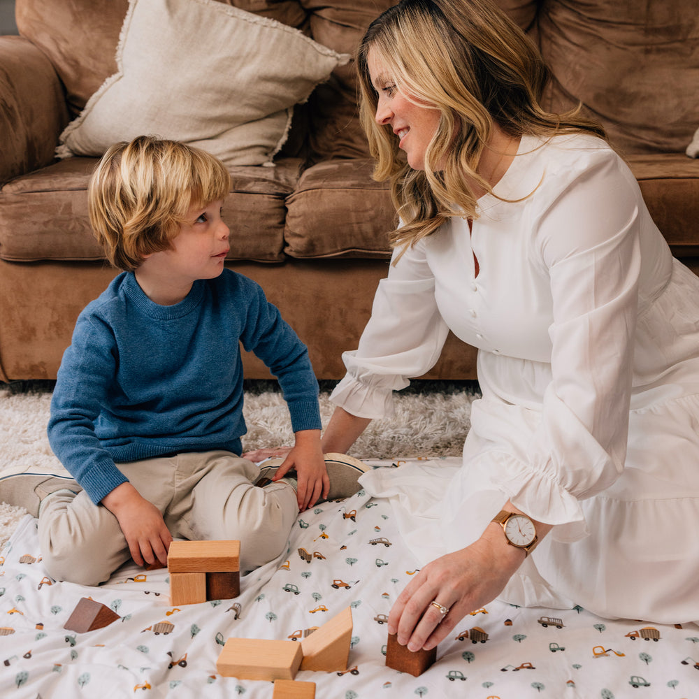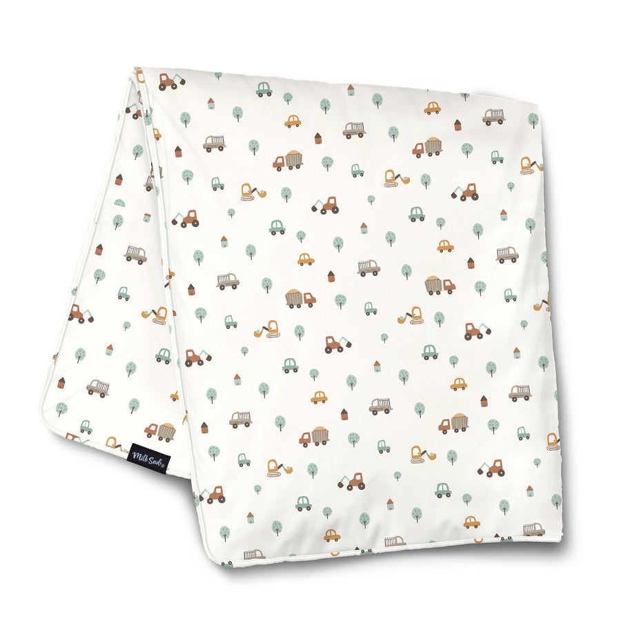The Hudson Milk Snob® Oversized Blanket is the perfect blend of comfort and versatility. Made from our premium rayon-blend fabric, it’s ultra-soft, breathable, and designed for all-season coziness. With its generously oversized dual-layer design, it offers extra coverage—perfect for snuggling, lounging, or on-the-go comfort. This design features playful construction trucks, cars, and trees in earthy tones.