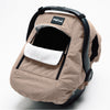 The Fawn Milk Snob Winter Car Seat Cover is a safe cover designed specifically for cold weather. The unique canopy shape keeps baby warm and cozy while providing proper air circulation, and the brim helps little ones to see out while staying dry! Easily adjust air flow by pulling the car seat canopy forward. Not for use inside a vehicle. This product features a soft taupe outer fabric.