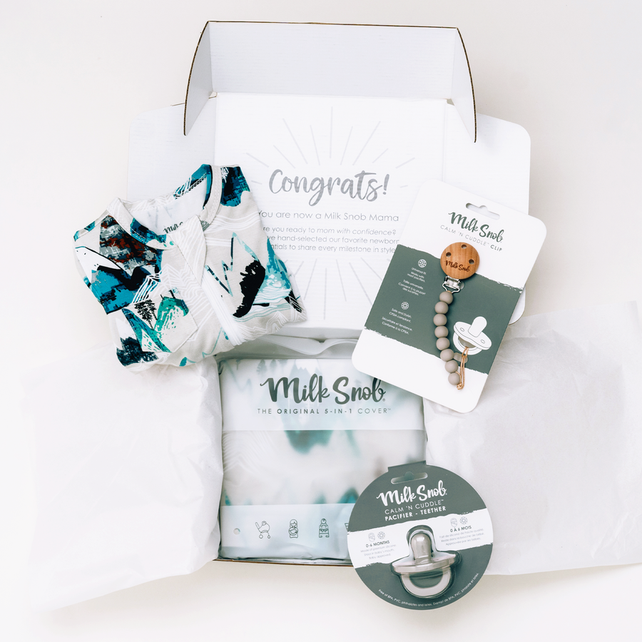 Welcome your baby into the world with the Rocky Mountains Welcome Baby Gift Box! This box includes all the essentials for a newborn, beautifully packaged for gifting.