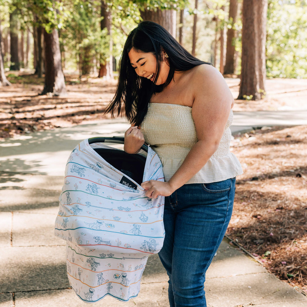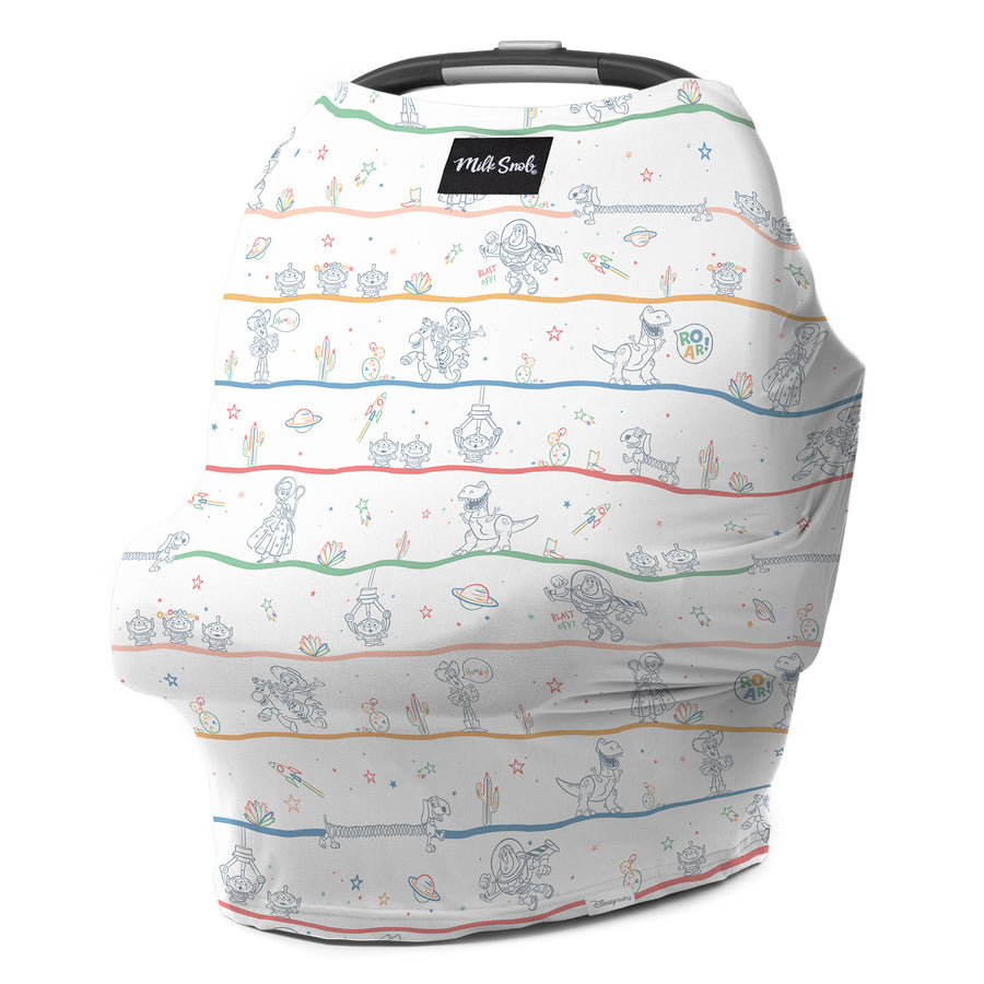 The original Disney Pixar Toy Story Playtime 5-in-1 Milk Snob® Cover is a breathable multifunctional cover that can be used as a baby car seat cover, nursing cover, shopping cart cover, high chair cover, infant swing cover and more.