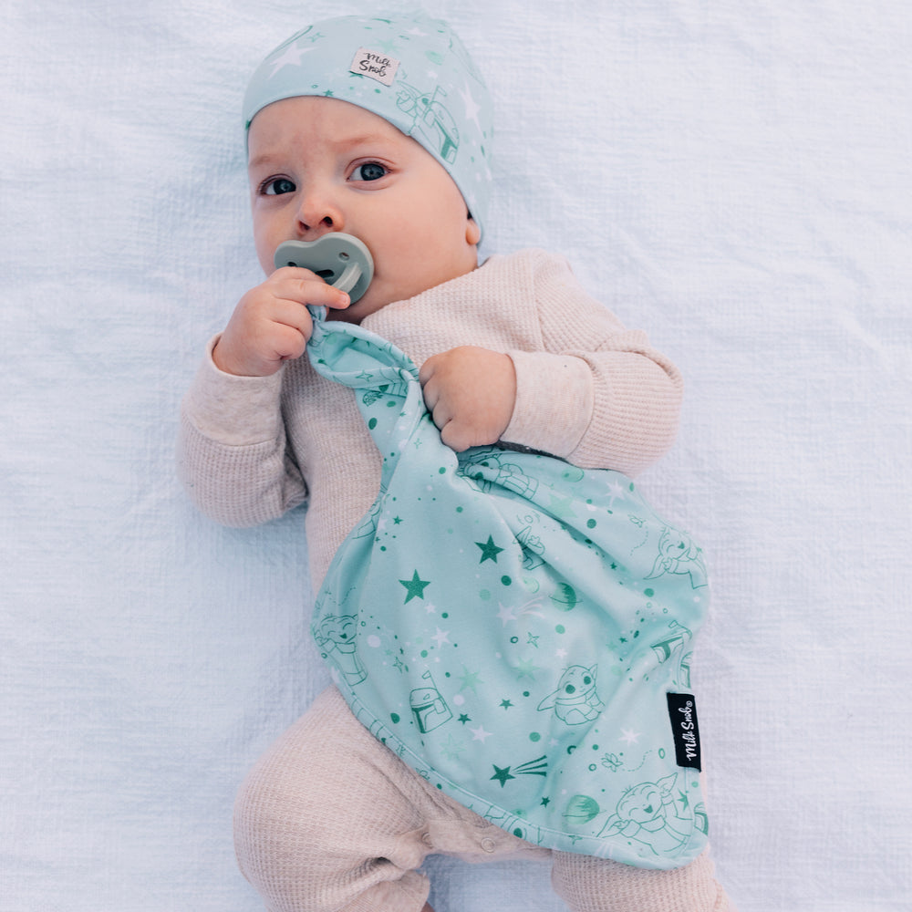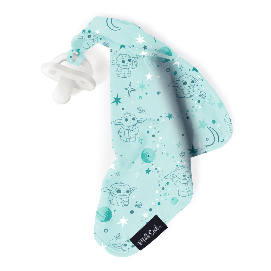 The Star Wars Sweet Bounty Milk Snob® Lovey is a mini security blanket, designed to make babies feel comforted. Attach it to a pacifier, teether, or other toy. Pacifier not included.