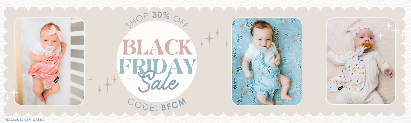 A lovey is a mini-security blanket for a baby, and when attached to a pacifier or toy, can also make the item easier to locate.
