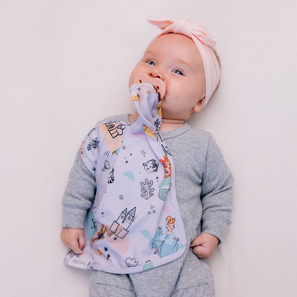 The Disney Princess Party Milk Snob® Lovey is a mini security blanket, designed to make babies feel comforted. Attach it to a pacifier, teether, or other toy. Pacifier not included.