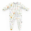 The Eloise Milk Snob® footed pajamas are slightly stretchy to grow with your baby, lightweight, breathable, and are perfect for any season. This design features soft watercolor spring florals on a white background.
